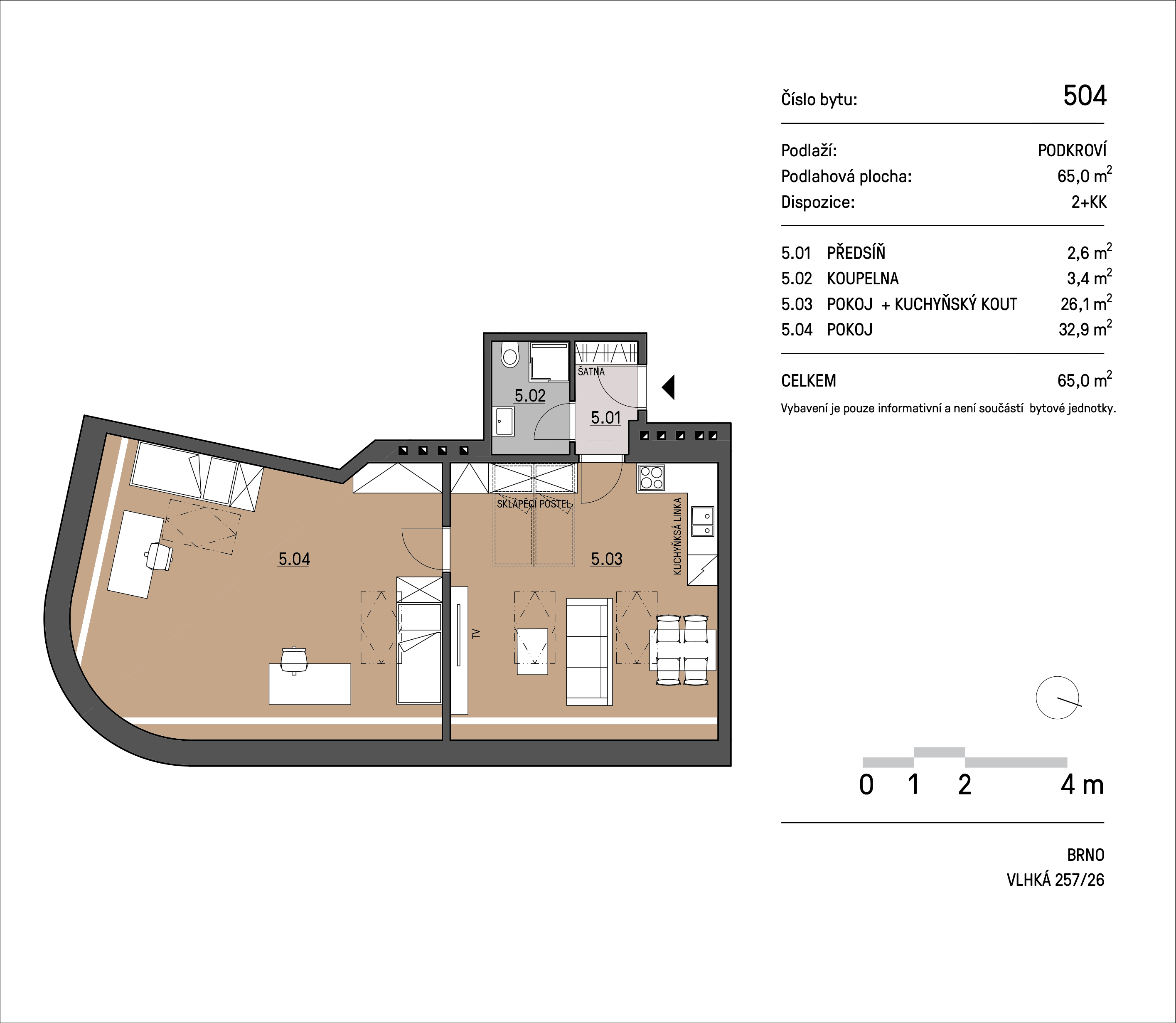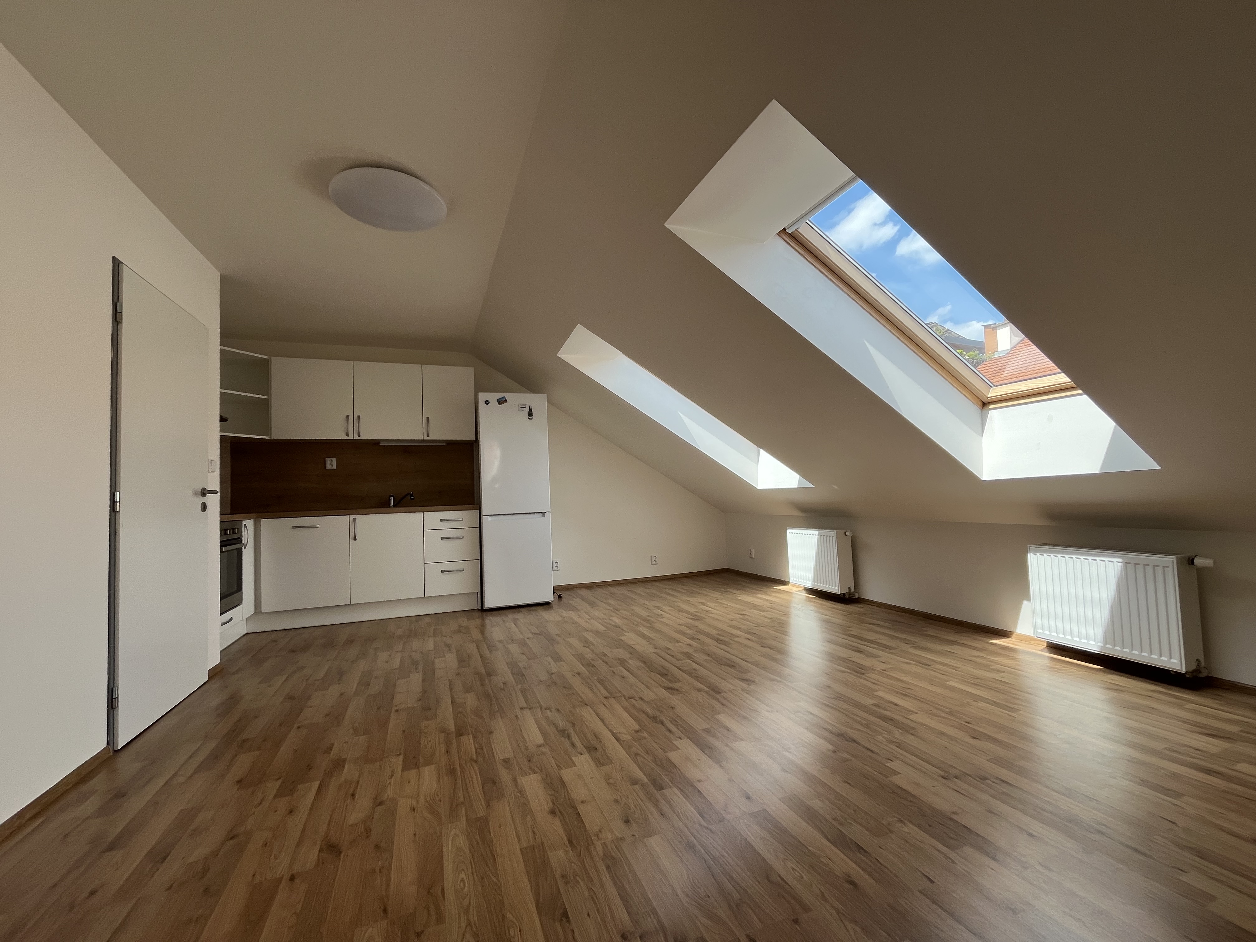 Útulný a světlý byt 2+kk k pronájmu na adrese Vlhká 26, Brno se nachází v 5. patře a nabízí podlahovou plochu 65,5 m². Byt je bez nábytku, takže si ho můžete zařídit podle vlastních představ. Součástí je koupelna, moderní kuchyňská linka se spotřebiči a klimatizace pro maximální komfort.